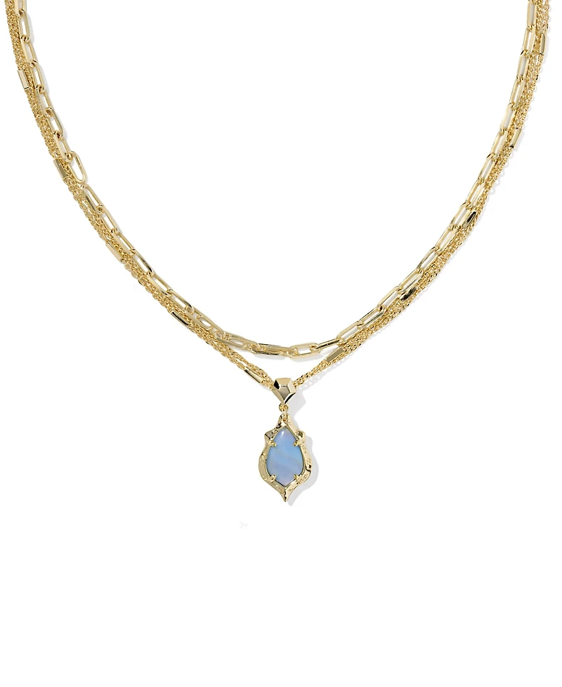 Add effortless elegance with this Kendra Scott Adriana scallop frame multi-strand necklace, featuring a teardrop pendant with scalloped border details. Set on delicate multi-strand chains and finished with a lobster clasp, this versatile gold-over-brass piece complements any outfit.