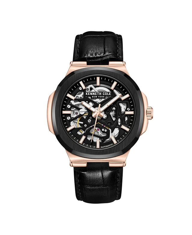 Kenneth Cole New York Men's Automatic Black Genuine Leather Watch 45.5MM