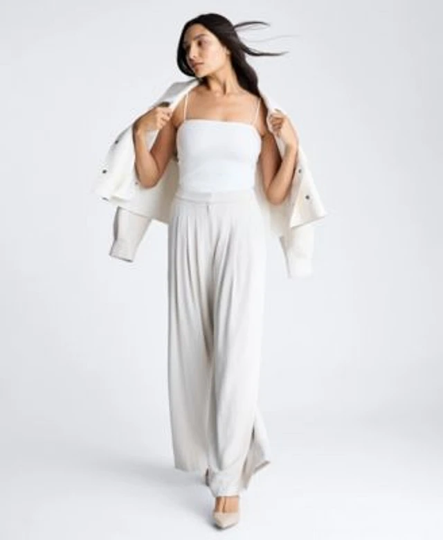 Kenneth Cole Women's Luxe Twill Fly Front Wide Leg Pants