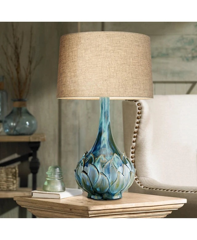 Kenya Modern Table Lamp 29 1/2" Tall Blue Green Reactive Glaze Ceramic Beige Linen Tapered Drum Shade for Bedroom Living Room House Home Bedside Night