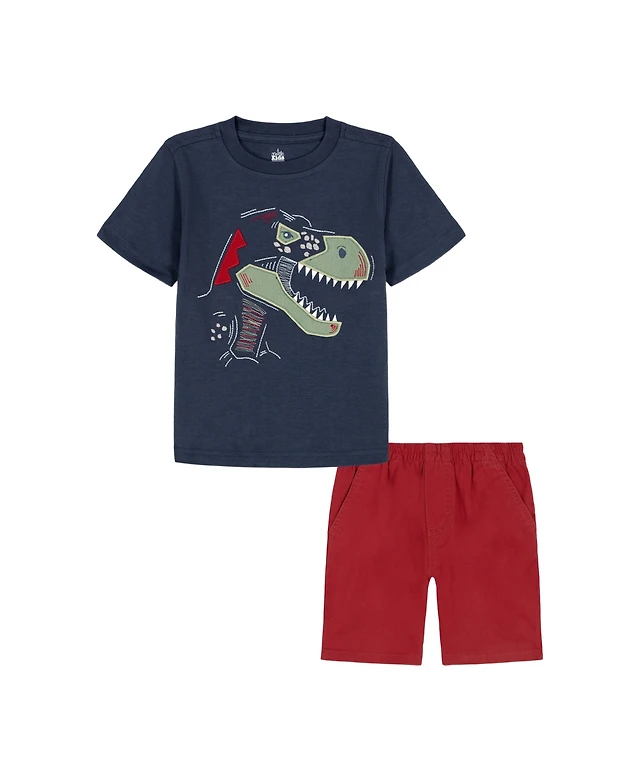 Kids Headquarters Toddler and Little Boys 2-Piece Slub Jersey Graphic T-Shirt and Twill Cargo Shorts Set