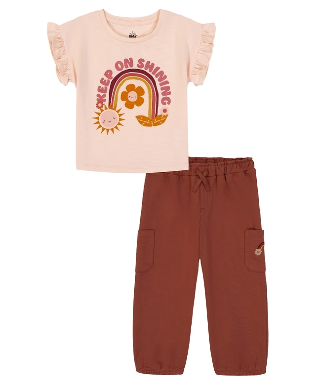 Kids Headquarters Toddler & Little Girls 4T-6X 2-Piece Ruffle Cuff Top and Pants Set