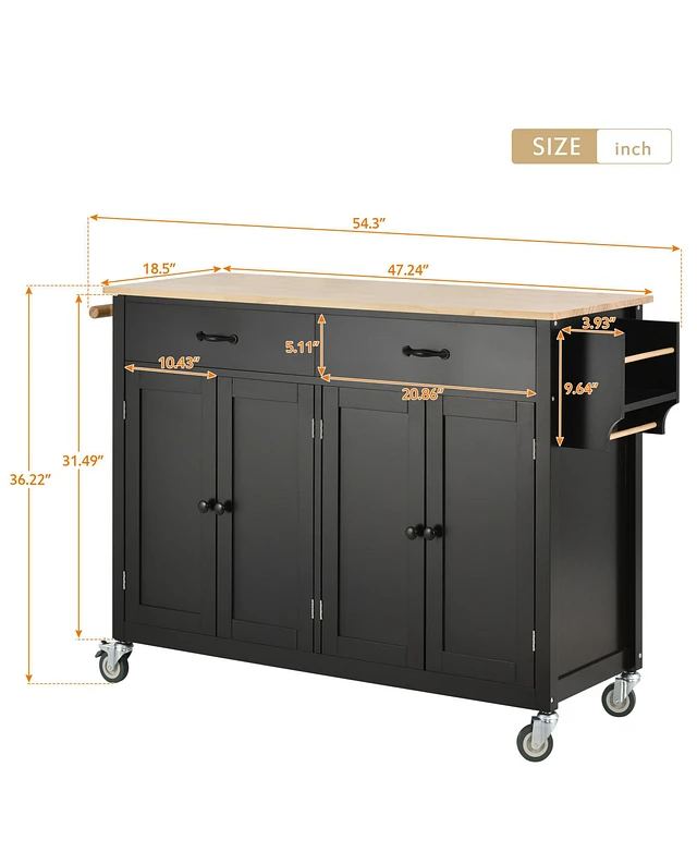 54.3" Kitchen Island Cart, Storage Cabinet with Solid Wood Top, 4-Door Cabinet, 2 Drawers & Locking Wheels-Maison Boucle