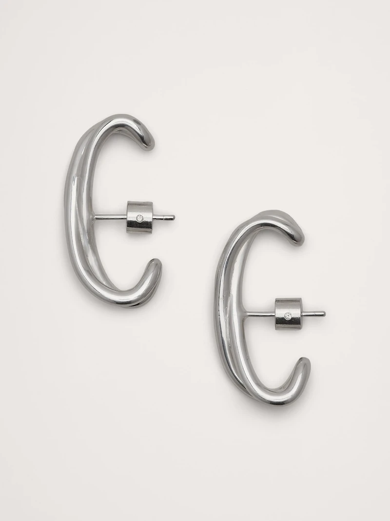 An organic take on an ear cuff designed for pierced ears, in 14k-gold or 999-silver plated brass. 14k-gold or 999-silver plated brass. Post backs. Length: 1. 2"