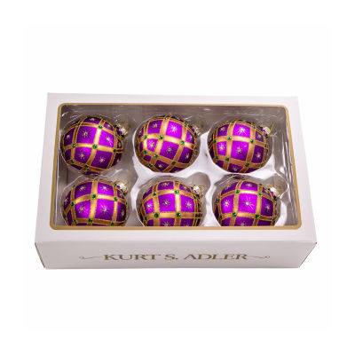Kurt Adler 80mm Glass Purple Jewel Ball 6-pc. Christmas Ornament