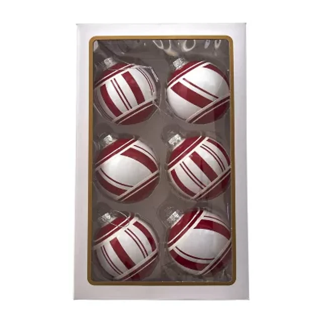 Kurt Adler 80MM Red and White Glass Ball Ornaments 6 Piece Set