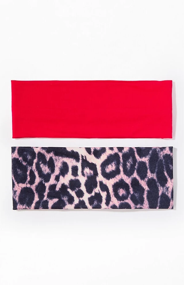 LA Hearts 2 Pack Leopard & Red Soft Headband