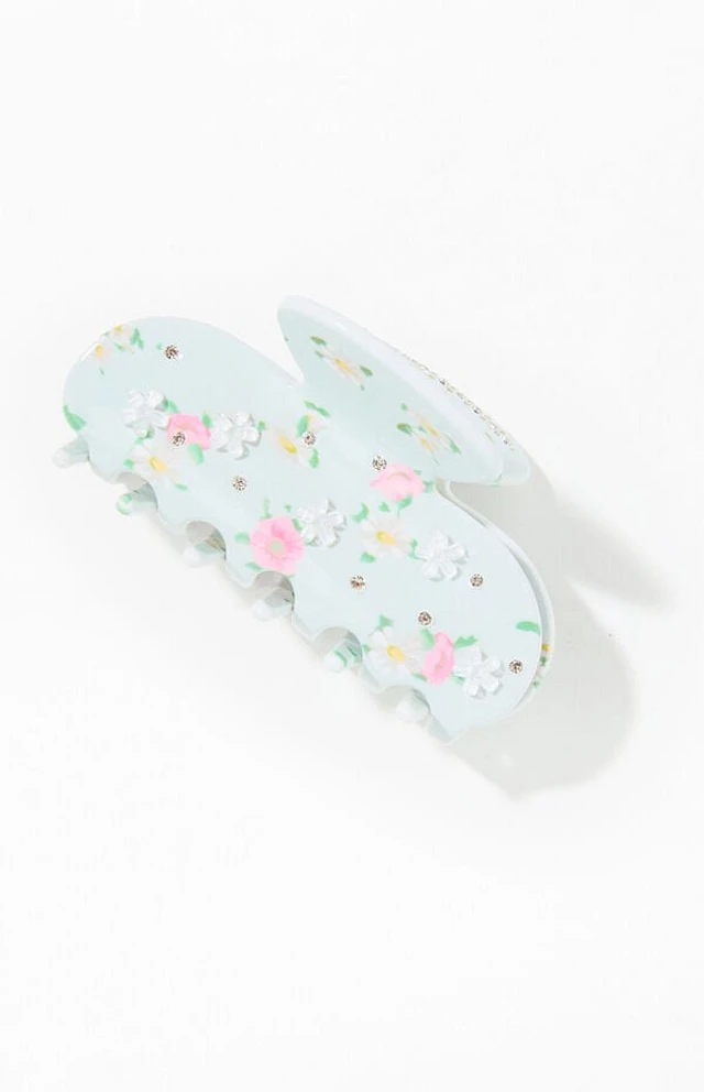 LA Hearts Gingham Floral Ruffle Hair Clip