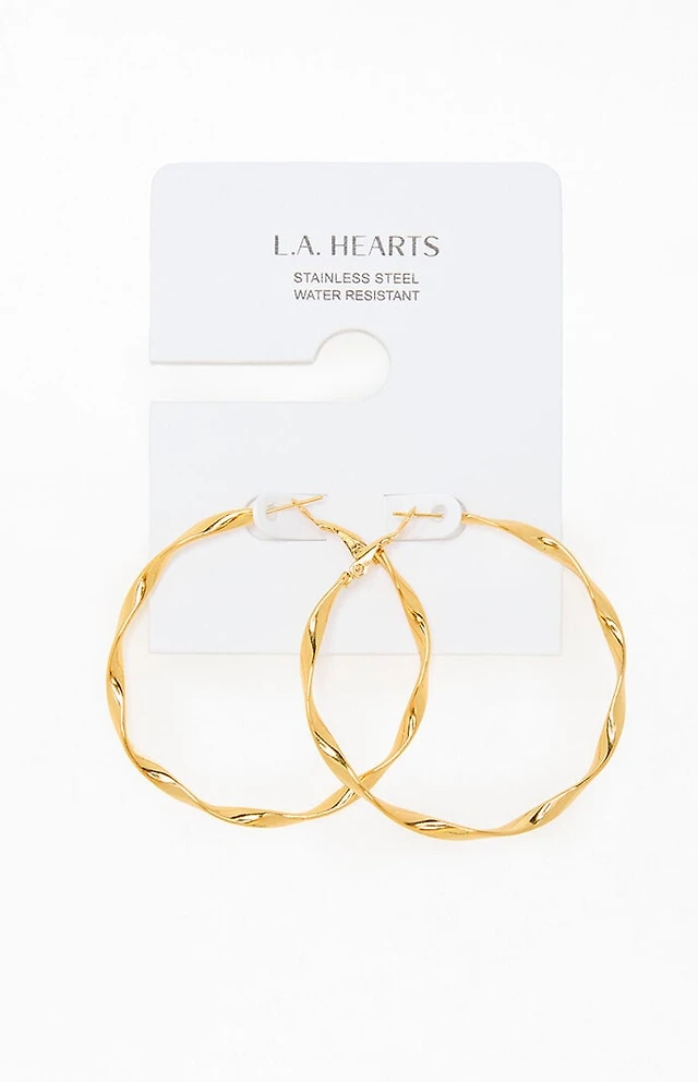 LA Hearts Silver 14K Gold Plated Braided Hoop Earrings