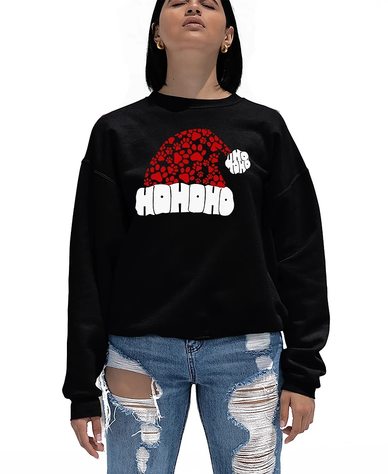 La Pop Art Women's Paw Print Santa Hat Word Crewneck Sweatshirt in San Juan, PR