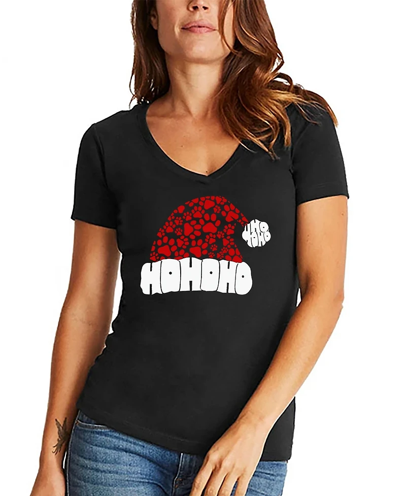 La Pop Art Women's Paw Print Santa Hat Word V-Neck T-shirtLa Pop Art Women's Paw Print Santa Hat Word V-Neck T-shirtLa Pop Art Women's Paw Print Santa Hat Word V-Neck T-shirt