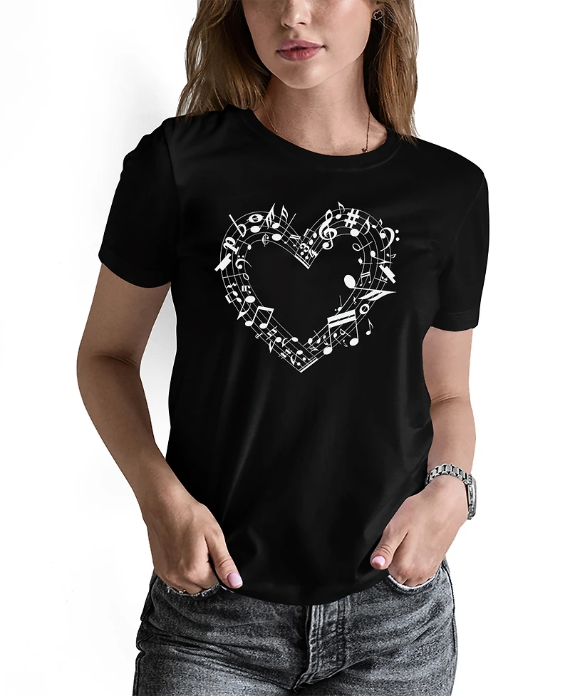 La Pop Art Women's Sheet Music Heart Word Pullover Top