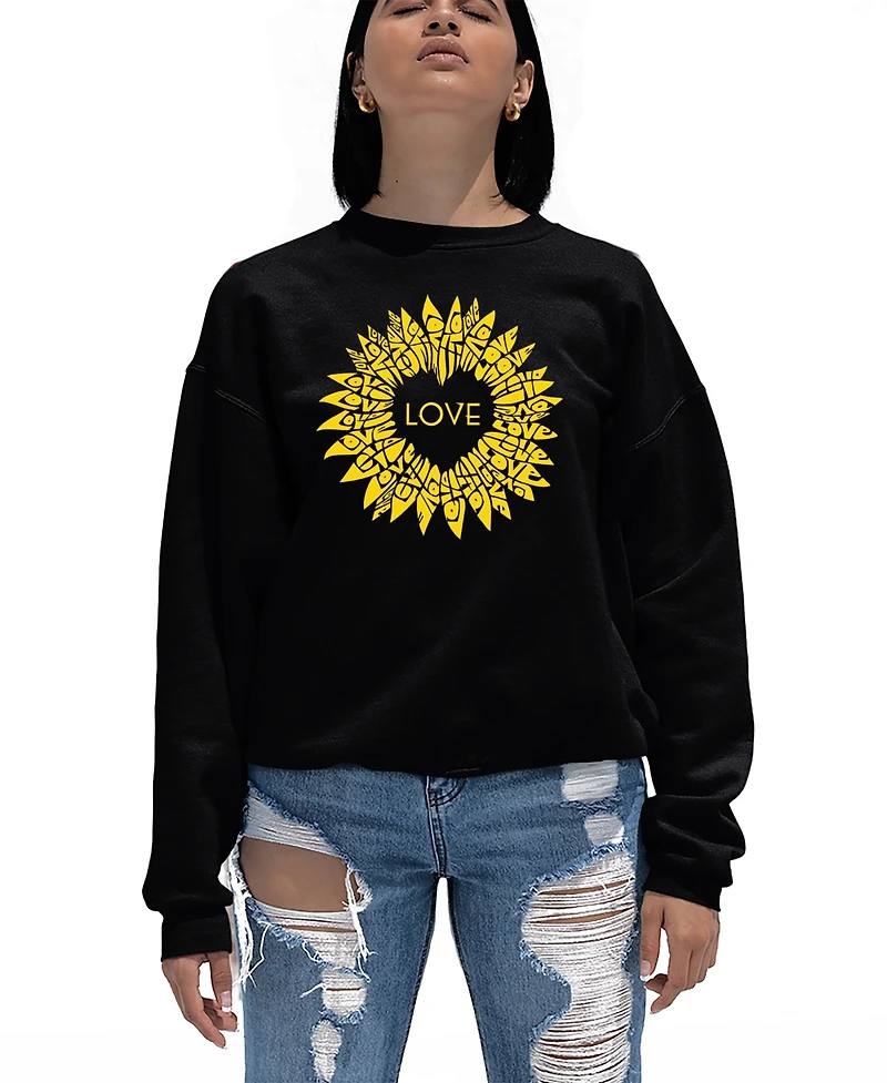 La Pop Art Women's Sunflower Love Word Crewneck Sweatshirt