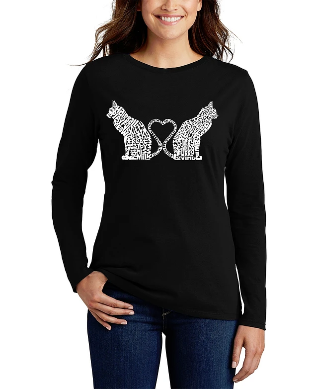 La Pop Art Women's Cat Heart Word Long Sleeve T-shirt