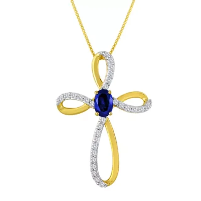 Womens Lab Created Blue Sapphire 10K Gold Cross 18 Inch Pendant Necklace