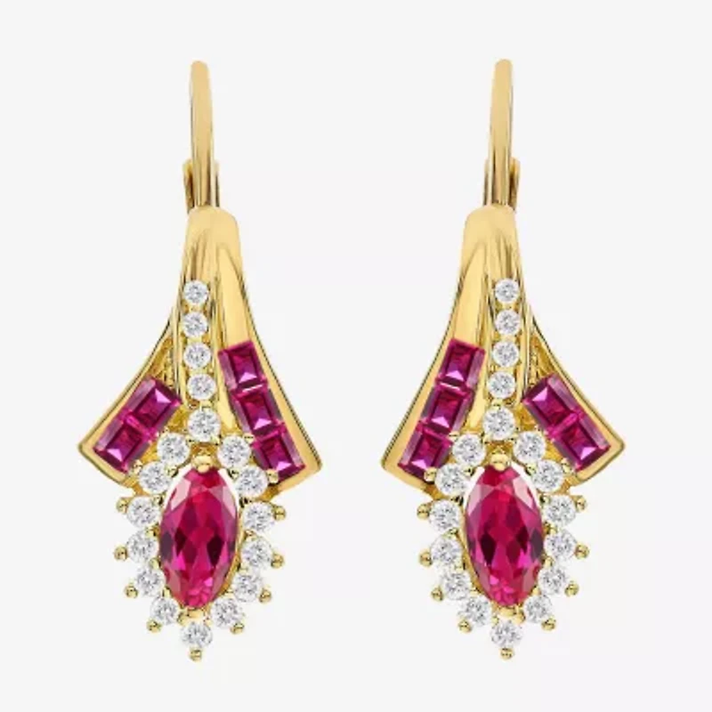 Lab Created Gemstone 14K Gold Over Silver Marquise Drop Earrings in San Juan, PR