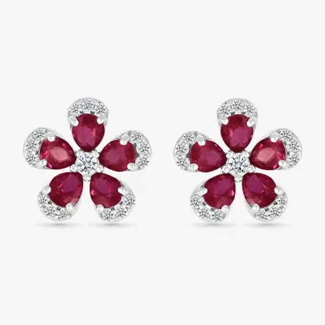 Lab Created Red Ruby Sterling Silver 12.5mm Flower Stud Earrings