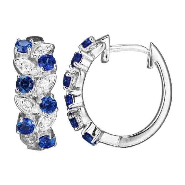 Lab-Created Blue Sapphire & White Sapphire Sterling Silver Earrings