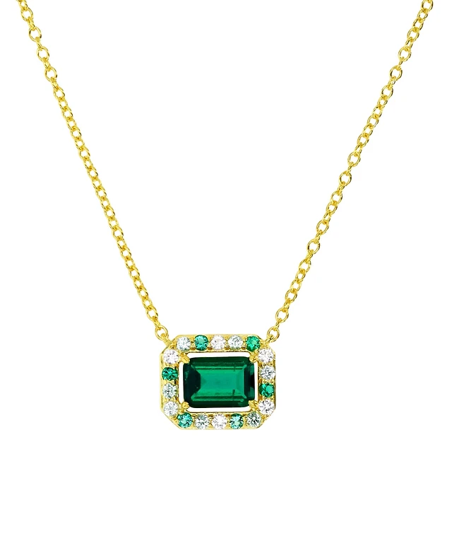 Lab-Created Emerald (5/8 ct. t.w.) & Lab-Created White Sapphire (1/2 ct. t.w.) Pendant Necklace in 14k Yellow Gold-Plated Sterling Silver, 16" + 2" ex