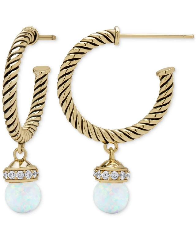 Lab Grown Opal (1-1/10 ct. t.w.) & Lab Grown White Sapphire (1/4 ct. t.w.) Rope Texture Dangle Hoop Earrings