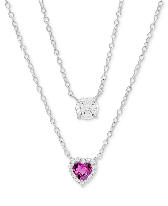 Lab Grown Pink & White Sapphire Heart Double Layer Necklace (1-3/4 ct. t.w.) in Sterling Silver, 30"