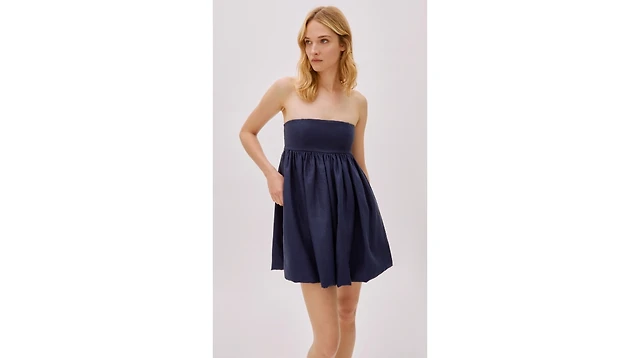 Labeca London Women's Mykonos Navy Linen Strapless Mini Dress