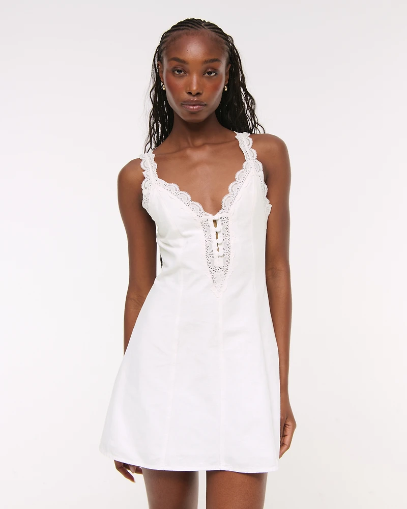 Lace-Trim Button-Front Mini Dress in San Juan, PR