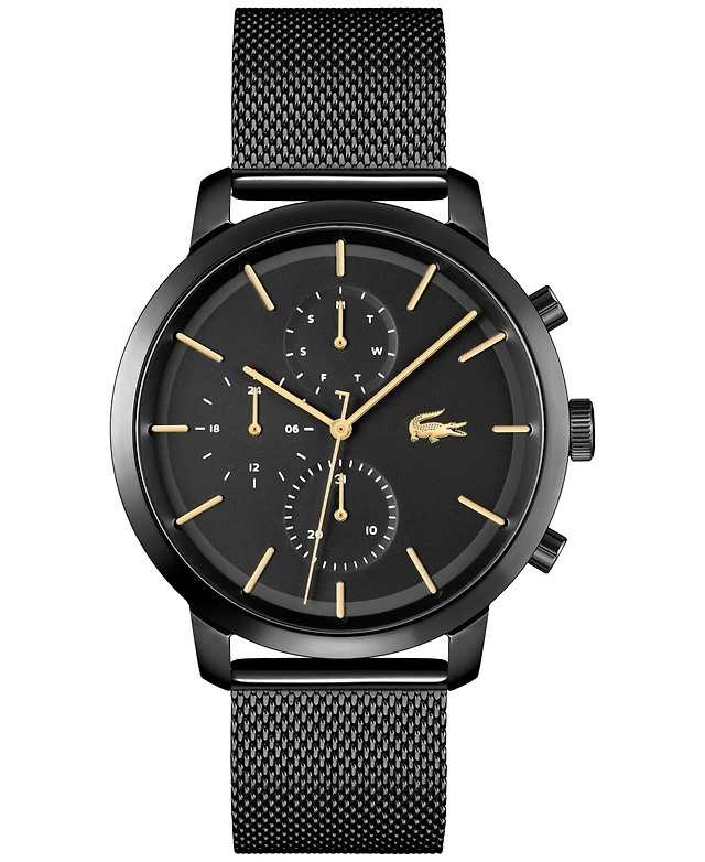 Lacoste Men's Replay Black-Tone Stainless Steel Mesh Bracelet Watch 44mm