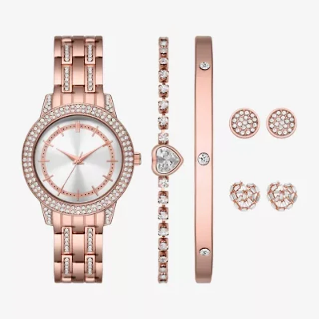 Ladies Boxed Sets Womens Crystal Accent Rose Goldtone 5-pc. Watch Boxed Set Fmdjset340