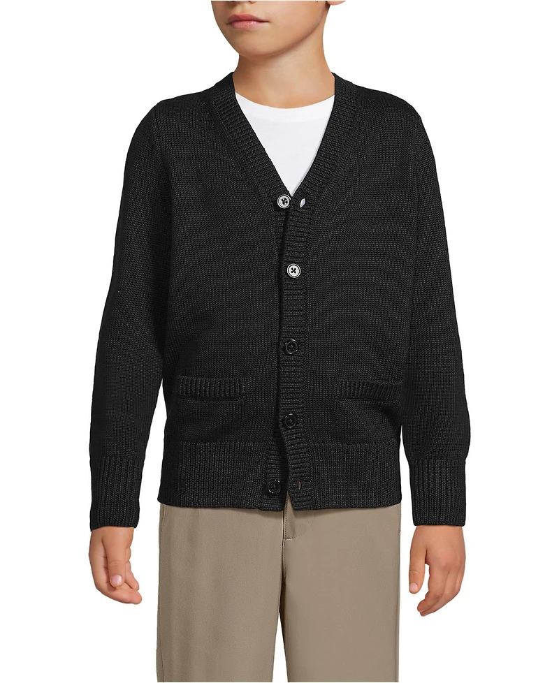Lands' End Boys Cotton Modal Button Front Cardigan Sweater