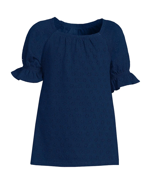 Lands' End Girls Short Sleeve Eyelet Ruffle Top