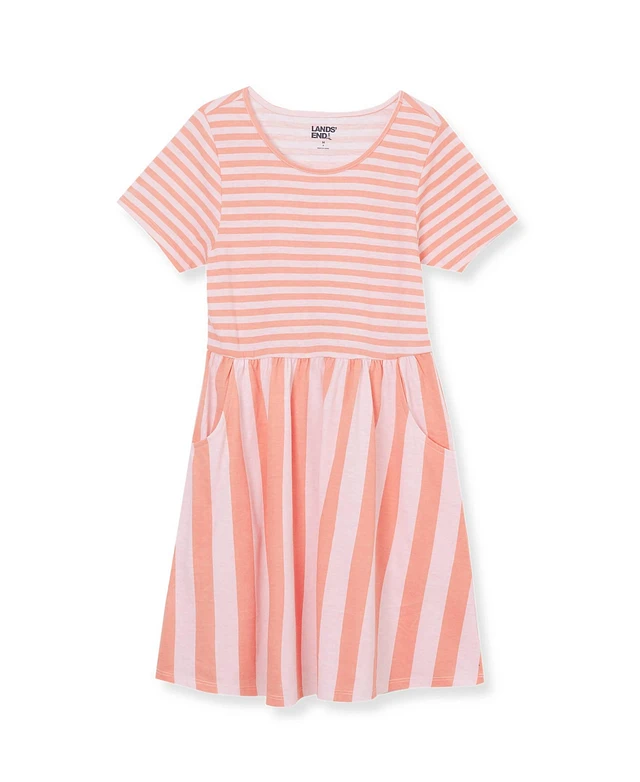 Lands' End Girls Short Sleeve Gathered Waist Jersey Dress