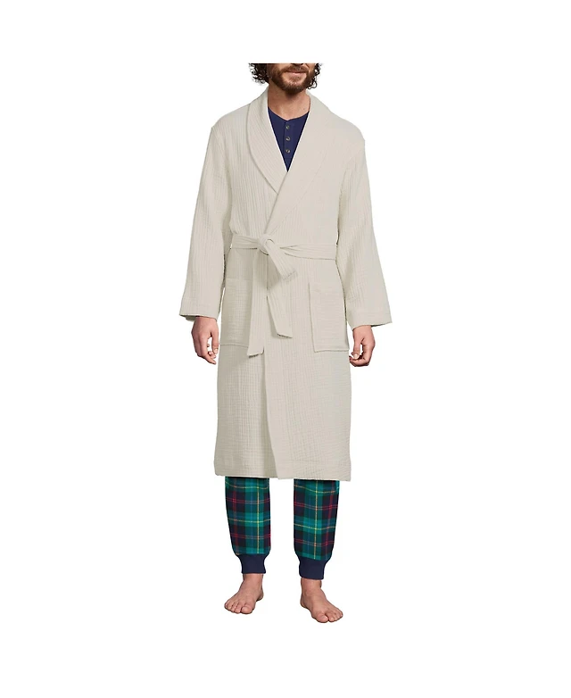 Lands' End Men's High Pile Fleece Lined Flannel Robe