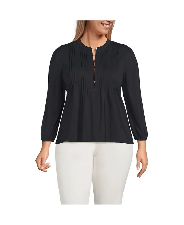 Lands' End Plus Lightweight Jersey Button Pintuck Top