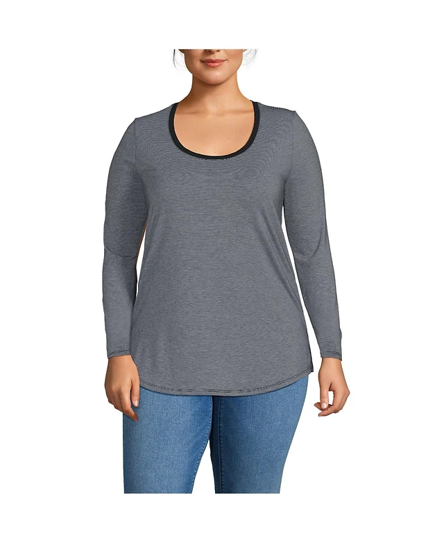 Lands' End Plus Long Sleeve Power Performance Scoop Neck Curved Hem Tunic Tee