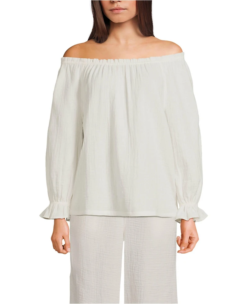 Lands' End Women's 3/4 Sleeve Gauze On or Off the Shoulder Blouse