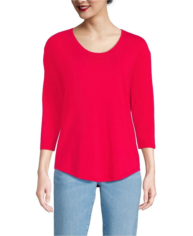 Lands' End Women's 3/4 Sleeve Lightweight Jersey Shirttail Tee