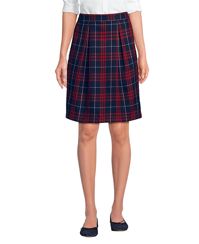 Lands' End Women's Plaid Box Pleat Skirt Top of the Knee