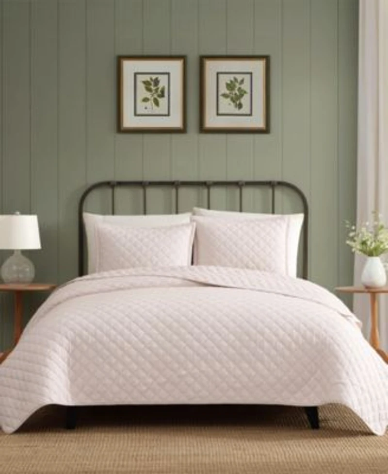 The Laura Ashley Tessa's Ticking Stripe quilt set features a classic ticking stripe print in a soft mauve hue. With a self-reversing design, this versatile stripe adds a relaxed, heritage-inspired look to any space.
