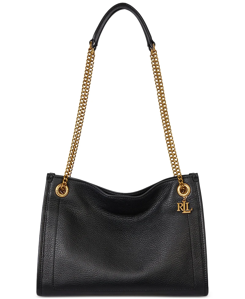 A sophisticated and practical addition to the Bradley collection, this small shopper tote from Lauren Ralph Lauren boasts a slouchy, capacious silhouette constructed from tumbled pebbled leather.