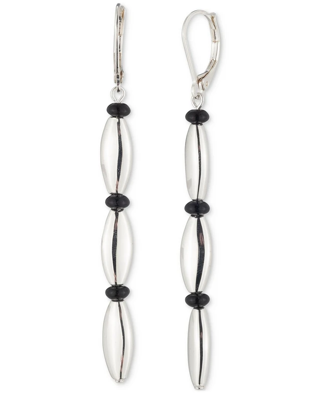 Lauren Ralph Lauren Silver-Tone Black Bead Linear Drop Earrings