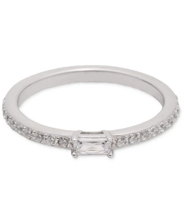 Pave & Square Cubic Zirconia Stack Ring Sterling Silver