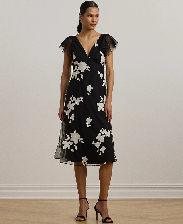 Lauren Ralph Lauren Women's Floral-Applique Tulle Cocktail Dress