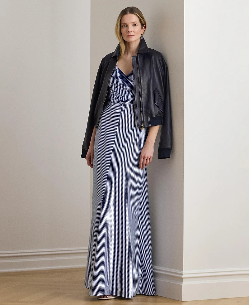 Lauren Ralph Women's Striped Pleated Sweetheart Neck Ball Gown