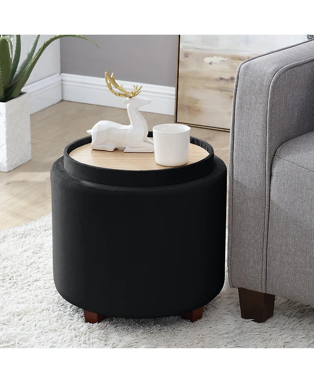 Lawrence Round Velvet Storage Ottoman with Table Top Lid
