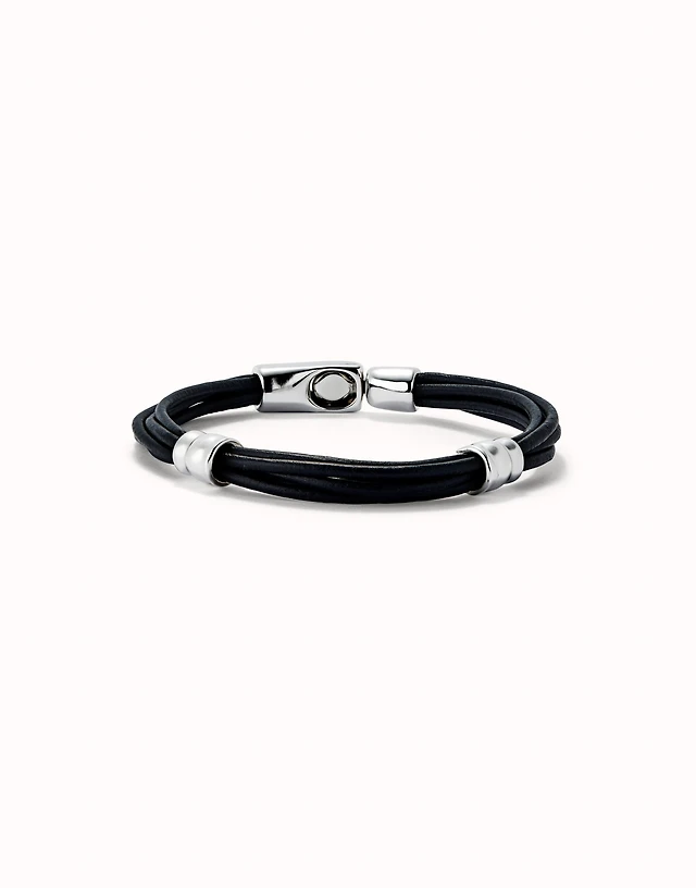 Leather bracelet with a black crystal