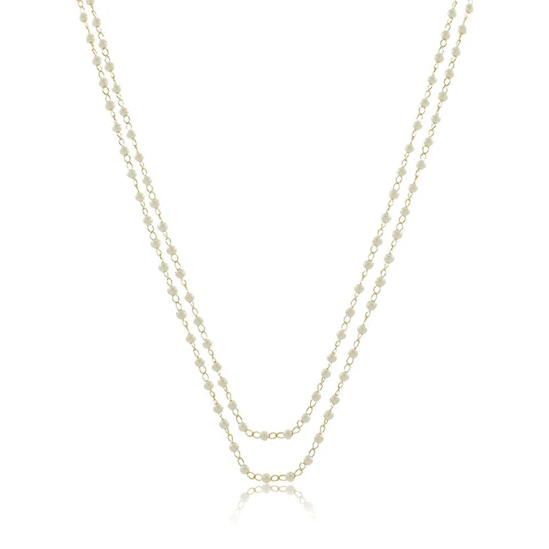 2028 Gold-Tone Simulated Pearl Crystal Double Cat Eyeglass/Badge Holder 28"