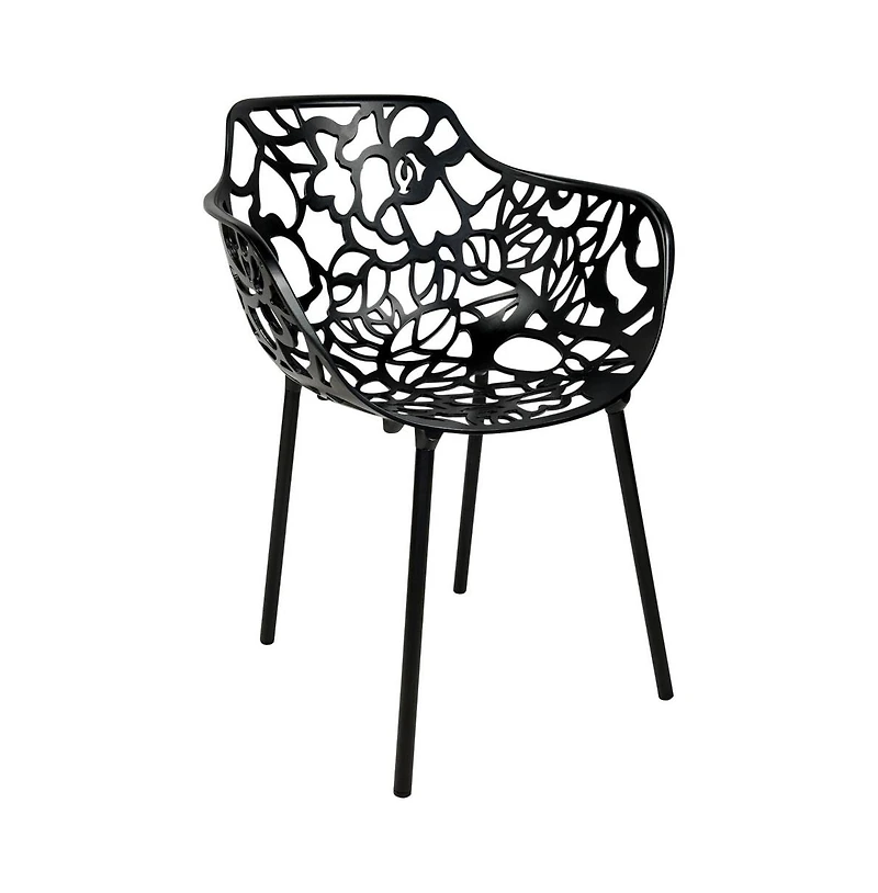 Discover a perfect balance of artistry and function with the LeisureMod Devon Stackable Dining Chair. The intricate floral cutout design on the backrest and seat isn t just visually striking—it enhances airflow for added comfort. Crafted with a robust powder-coated aluminum frame, this chair offers unmatched durability and weather resistance, ideal for outdoor living. The Uv-protected finish preserves its beauty even under harsh sunlight, while the stackable design simplifies storage in any setting. Thoughtfully equipped with plastic floor protectors, it ensures safety for both indoor and outdoor surfaces. Delivered fully assembled, the Devon chair seamlessly transitions between patios, gardens, dining rooms, or balconies, blending timeless style with everyday convenience.