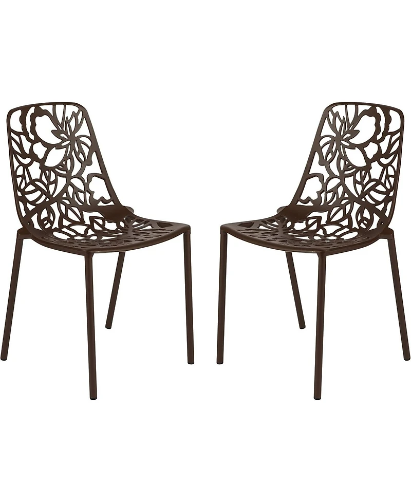 Discover a perfect balance of artistry and function with the LeisureMod Devon Stackable Dining Chair. The intricate floral cutout design on the backrest and seat isn t just visually striking-it enhances airflow for added comfort. Crafted with a robust powder-coated aluminum frame, this chair offers unmatched durability and weather resistance, ideal for outdoor living. The Uv-protected finish preserves its beauty even under harsh sunlight, while the stackable design simplifies storage in any setting. Thoughtfully equipped with plastic floor protectors, it ensures safety for both indoor and outdoor surfaces. Delivered fully assembled, the Devon chair seamlessly transitions between patios, gardens, dining rooms, or balconies, blending timeless style with everyday convenience. 1-Year Limited Manufacturer Warranty