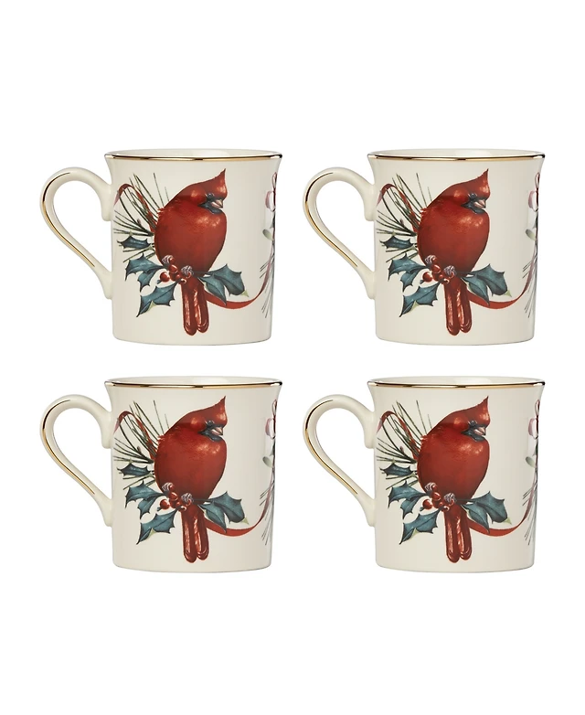 Lenox Winter Greetings Cardinal Mugs, Set of 4